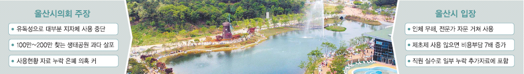 이 의원이 공개한 자료에 따르면 울산대공원에는 2007년 6만 1000㎖(4곳)를 비롯해 2008년 8만 8500㎖(6곳), 올들어 8월 말 현재 2만 2500㎖(5곳)를 사용했다. 특히 지난해에는 어린이들이 많이 찾는 대공원 자연학습원과 테마초화원, 가족피크닉장 등에도 무분별하게 살포된 것으로 드러났다.