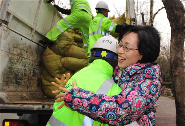 행사는 ‘따뜻한 겨울나기 운동’의 하나로 마련됐다. 박 구청장은 프리허그를 신년까지 이어가고, 홀몸 노인을 위한 푸드박스 전달, 취약지역 방문 등 ‘스킨십 구정’을 계속할 작정이다. 한편 송파구는 매년 6월 1일을 ‘준 데이’(June Day)로 정해 운영하고 있다. 각 분야 시니어와 주니어가 만나 사연을 담은 선물과 노하우를 나누는 세대 소통의 자리다.
