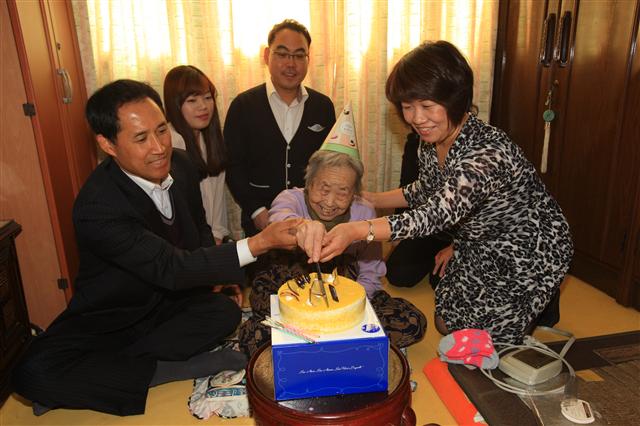 금호1가동에선 아예 직원 7명이 자발적으로 ‘금단비’를 만들었다. 나정애 동장은 “다른 업무도 그렇지만 복지 업무는 담당 직원들이 어떻게 하느냐에 따라 효과가 천차만별인데 적극 나서주는 직원들이 고맙다”고 말했다. 금단비가 시작한 첫 이벤트가 독거노인들 깜짝 생일 파티다. 홍명안 금호1가동 복지팀장은 “생일인데도 찬방에서 홀로 미역국을 드시는 분들이 안타까워 케이크로 간단히 축하해 드리고 기념사진 한 장 찍어 드릴 뿐인데도 다들 좋아하셔서 오히려 저희가 고마울 정도”라며 웃었다. 때마침 전화벨이 울렸다. 췌장암으로 고생하던 할머니 한 분과 연락이 안 된단다. 홍 팀장은 얼른 자리를 털고 일어섰다. “어제 다르고 오늘 다른 분들이 노인들이세요. 금단비는 그분들을 한 번쯤 웃게 해 드리자는 겁니다.”