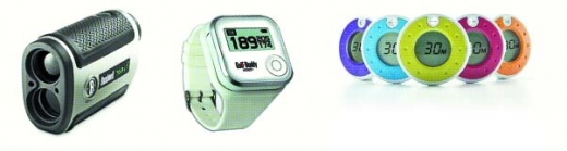 | 왼쪽부터 레이저 방식의 거리측정기, GPS 방식 거리측정기, 디지털 볼마커. |