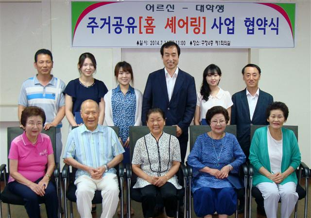 ‘소유’가 아닌 빌려 주고 빌려 쓰는 개념의 공유경제가 대세로 자리하는 추세다. 노인과 대학생이 주거공간을 공유하는 홈셰어링 사업에 주목하는 까닭이다. 노인의 노후생활을 지원하고 대학생의 주거비용 부담을 덜어 일석이조라는 평가도 받는다.구는 앞서 임대 가능한 방을 소유한 65세 이상 부부나 독거노인, 지역 소재 재학생을 대상으로 참여자를 모집했다. 노인 11명과 대학생 6명이 1차로 신청했다. 구는 임대 가구를 방문해 방 크기와 상태, 주변환경 등 조사 내용을 대학생들에게 알렸다. 입주 희망 학생들이 집을 방문해 면담하는 과정도 거쳤다.