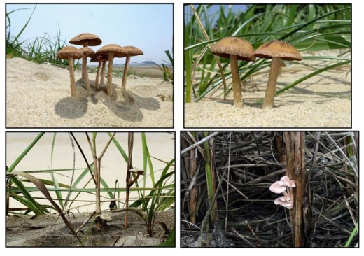 | 위가 백사장눈물버섯(가칭), 아래는 모래선녀버섯(가칭). 국립공원관리공단 제공 |