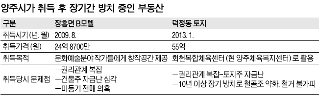 양주, 복합체육센터 건립 목적으로 특혜논란에도 가압류 토지 사들이고 안전문제로 건물 활용 어려워 방치