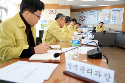 | 구제역 방역대책회의 이동필(오른쪽) 농림축산식품부 장관이 21일 오후 정부세종청사 농식품부에 설치된 구제역 방역대책상황실에서 구제역 방역대책회의를 주재하고 있다. 앞서 지난 17일 충남 공주시 탄천면과 천안시 풍세면 돼지농장에서 구제역 의심신고가 접수된 지 하루 만에 농림축산검역본부는 구제역 양성 판정을 내렸다. 농림축산식품부 제공 |