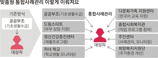 정부는 올해 안에 복지허브화 지역을 933개 읍·면·동으로 확대해 기존의 주민센터를 통합복지 서비스를 제공하는 행정복지센터로 바꾸고 맞춤형 복지 전담팀을 설치할 예정이다.