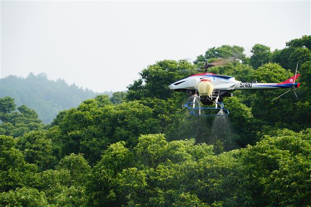 중·대형 헬기로 실시하는 기존 밤나무 항공방제는 약효를 높이기 위해 저공 비행을 해야 하는 고난도 작업이어서 조종사들이 부담을 느껴 왔다. 또 공중에서 약제를 살포하면서 다른 농작물 등에 영향을 미칠 수밖에 없다.