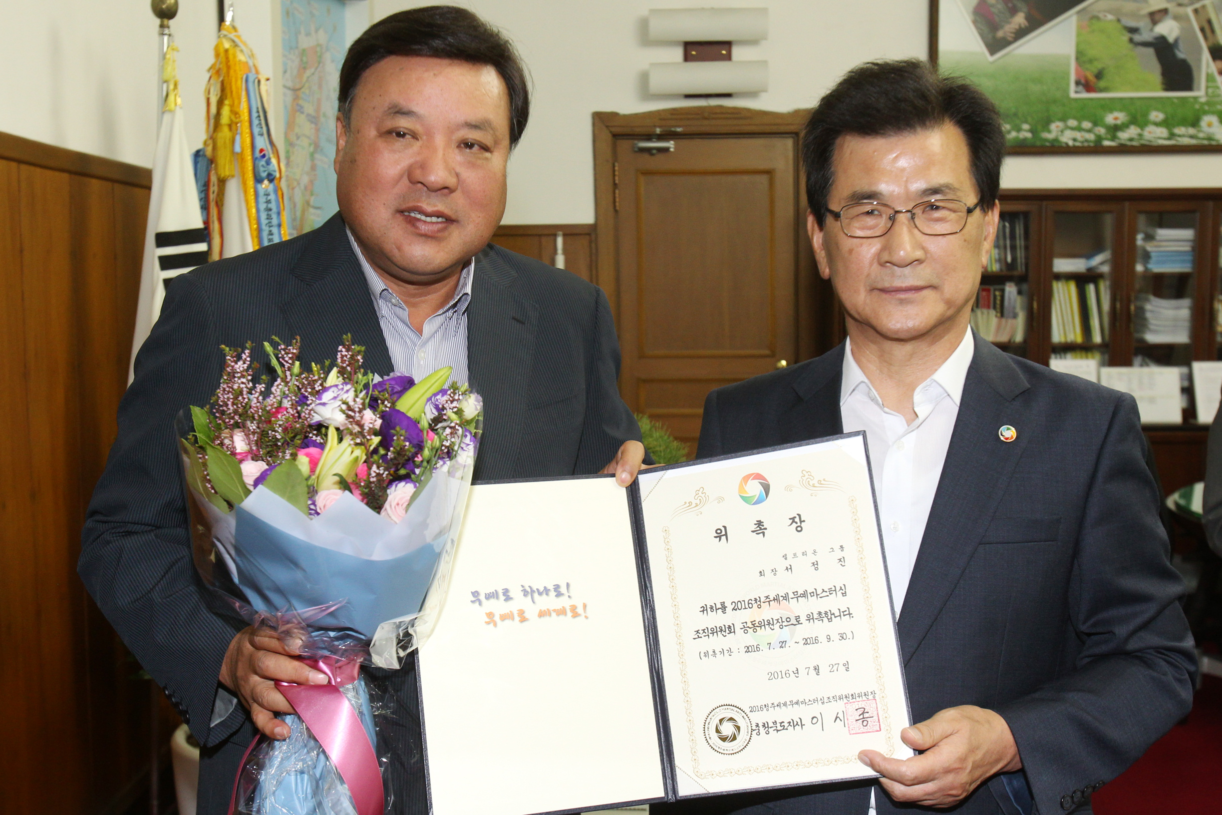 서 회장은 앞으로 이시종 충북지사, 한덕수 전 국무총리와 함께 공동으로 위원장직을 맡아 오는 9월까지 대회 성공 개최를 위해 홍보활동한다. 대회 개·폐막식 등 주요 공식행사에 참석하고, 조직위원회의 중요사항도 의결한다. 서 회장은 청주 출신으로 건국대를 졸업했으며 바이오 의약품 제조업체인 셀트리온을 2002년 설립해 바이오 업계의 대표 주자로 성장시켰다. 서 회장은 “무예마스터십 개최로 충북이 세계무예의 중심지로 발돋움했으면 좋겠다”고 말했다.