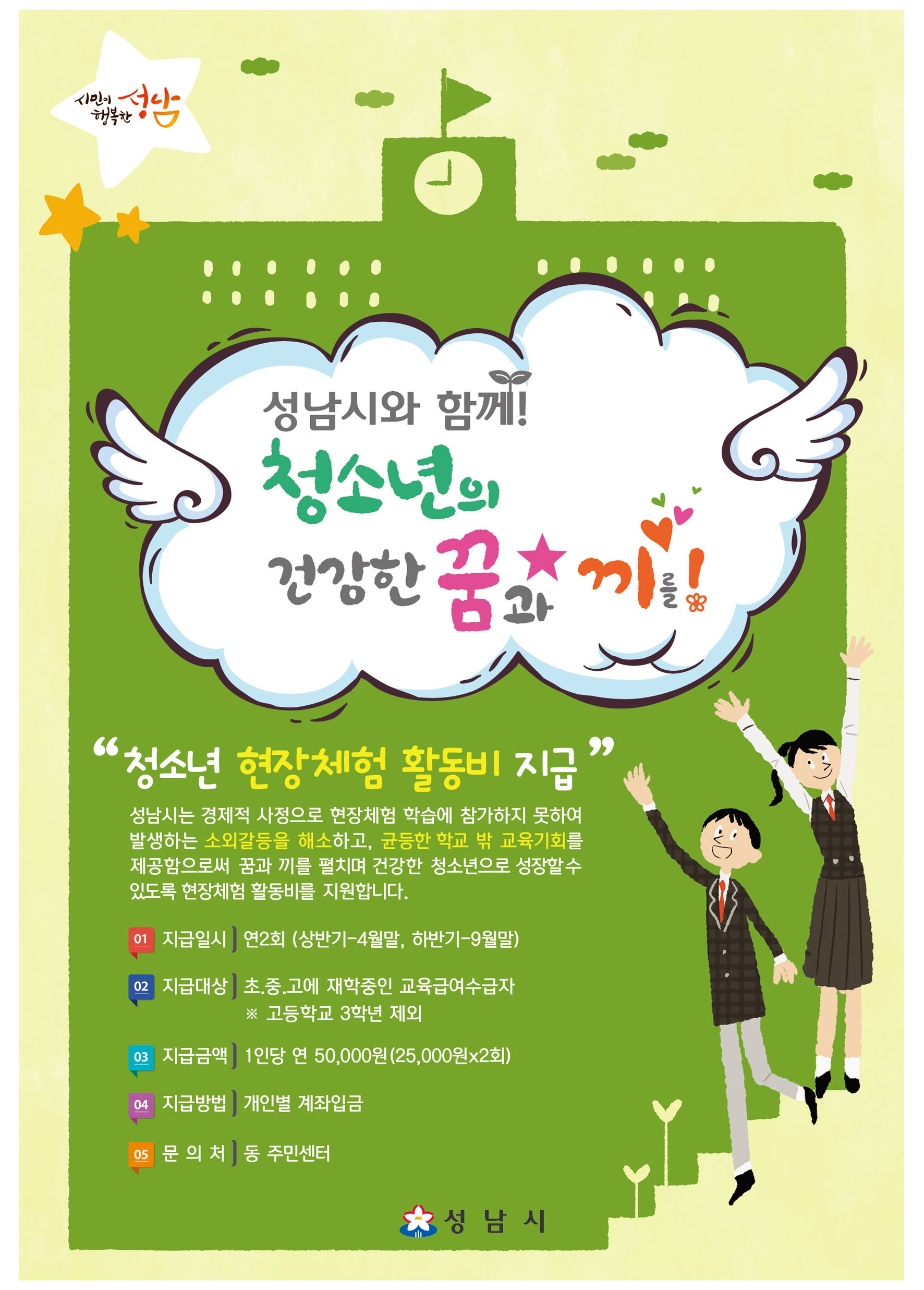 성남시 복지지원과 담당자는 “균등한 교육기회를 보장해 학생 개개인의 꿈을 키우는 계기를 마련해 나가겠다”고 말했다.