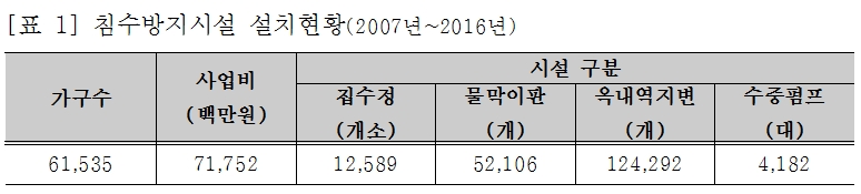 또한, 주 의원은 “서울시가 차년도 기금운용계획을 수립하기 전에 기금 사용 등과 관련하여 자치구의 수요조사를 실시하도록 규정함으로써 열악한 재정여건으로 인해 긴급한 재난예방시설물의 유지관리에 어려움을 겪고 있는 자치구의 재난예방사업들을 지원할 수 있는 창구를 마련횄으며, 더불어 기금 관련 사업에 대한 심의기준을 기금운용심의위원회의 심의사항에 포함하도록 했다”면서 “이에 따라 기금운용에 대한 공정성・투명성・책임성을 제고할 수 있을 것”이라고 강조했다. 한편, 서울시는 2007년부터 지난해까지 총 6만2천여 침수취약 지하주택 물막이판, 역류방지시설, 수중펌프 등 침수방지시설을 지원하였고, 올해는 5천여 가구에 가구에 지원할 예정에 있으며, 자치구 수요조사의 경우 2012년부터 2016년까지 총 351건 2,520억 46백만원이 요청되어 이 중 총 246건이 가결되어 1,483억 94백만원이 지원됐다.