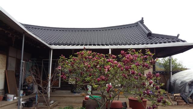 | 경북 안동시 풍천면 하회리 하회마을 A모(78)씨의 한옥 지붕에 함석 기와가 올라가 있다. A씨가 최근 지붕을 수리하면서 낡고 오래된 시멘트 기와를 함석 기와로 전면 교체했다고 류한철 하회마을보존회 사무국장은 설명했다. |
