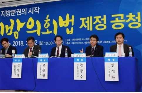 김광수 의원은 ‘지방의회 위상강화와 지방의회법 제정’의 제목으로 토론에 들어갔다. 김 의원은 서론에서, “올바른 지방자치는 지방 스스로가 권한과 책임을 갖고 지방의 사무를 자주적으로 수행함을 의미한다. 지방자치가 제대로 작동한다면 지역발전과 주민복리를 증진시킬 수 있고, 더 나아가 국가발전까지도 가능케 한다. 하지만 지방에 충분한 권한이 부여되지 않은 상황에서는 지방은 지역 문제조차 제대로 해결하기 어렵다”고 강조했다.