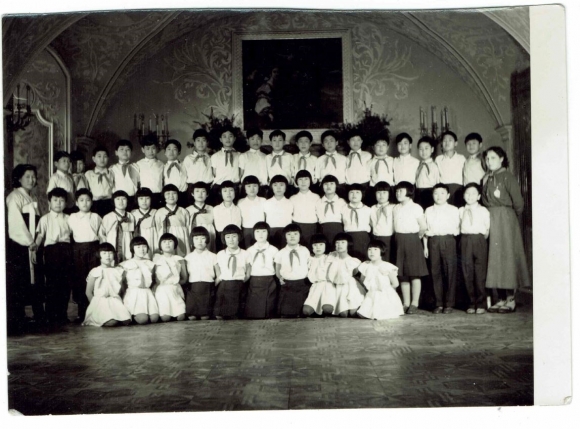 | 1950년대 체코의 발리치 궁전에서 위탁교육을 받던 북한 전쟁고아들의 단체 기념 사진. 아동들 좌우에 이들을 돌보던 위탁 보모의 모습도 보인다. 체코 발리체 지자체 아카이브, 베커스 김영자 제공 |