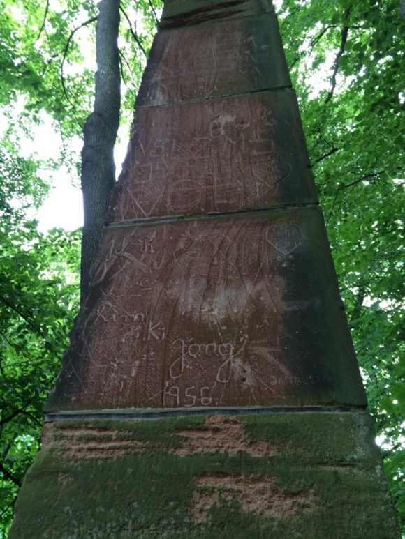 | 체코 발리치 궁전에서 위탁교육을 받았던 북한 전쟁고아들이 정원 한쪽 구석에 서 있는 오벨리스크에 자신의 이름을 새긴 흔적이 여전히 남아 있다. Rim Ki gong이란 이름도 보인다. 베커스 김영자 제공 |