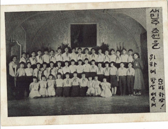 | 1950년대 체코의 발리치 궁전에서 위탁교육을 받던 북한 전쟁고아들의 단체 기념 사진. 아동들 좌우에 이들을 돌보던 위탁 보모의 모습도 보인다. 체코 발리치 지자체 아카이브, 베커스 김영자 제공 |