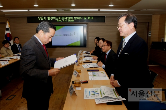경기 부천시는 시청 만남실에서 송유면 부시장 주재로 ‘부천시 행정혁신자문위원회’ 발대식에 이어 회의를 열었다고 16일 밝혔다.이 자리에서 각계 전문가 14명 자문위원들에게 위촉장을 주고 부천시 광역동에 대해 설명했다. 행정혁신자문위원회의 기능과 역할 등에 대한 프레젠테이션 등으로 진행됐다.
