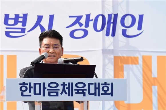 | 김생환 서울시의회 부의장이 ‘2019 장애인 한마음체육대회’에 참석해 축사를 하고 있다. |