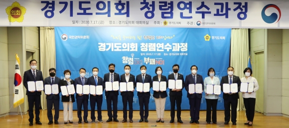 17일 오후 3시부터 경기도의회 대회의실에서 진행된 국민권익위 청렴연수원 청렴교육은 청렴서약식, 청렴판소리, 청렴 토크콘서트 등으로 진행됐다.
