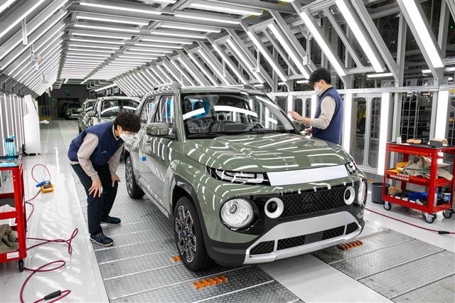 14일 GGM과 현대자동차 등에 따르면 지난해 9월 첫 차를 광주에서 양산한 캐스퍼가 지난달 누적 생산 2만대를 돌파했다. GGM은 지난달까지 월평균 3900대를 생산했으며 이달부터는 시간당 생산대수(UPH)를 기존 22대 수준에서 25.7대까지 끌어올려 월평균 4500대를 만들 예정이다. 이러한 추세라면 올해 목표인 5만대 달성이 무난할 것으로 예상된다.