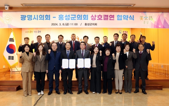 8일 광명시의회는 홍성군청 대강당에서 홍성군의회와 공동의 발전과 번영을 위한 상호결연 협약식을 체결했다.