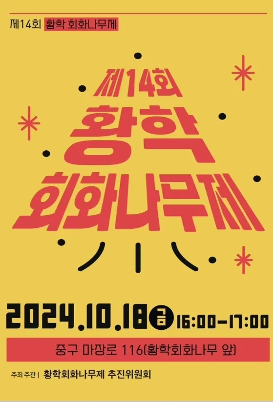 서울 중구는 오는 18일 ‘황학회화나무제’(포스터)와 ‘신중앙시장 힙도락’(포스터) 축제를 연계 개최한다고 14일 밝혔다.