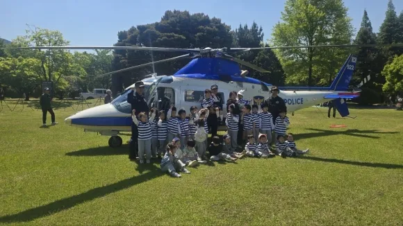경남경찰청은 2일 경남도청 잔디광장에서 어린이집 원아와 부모를 대상으로 경찰 헬기 소개·지상 탑승 체험행사를 진행했다.