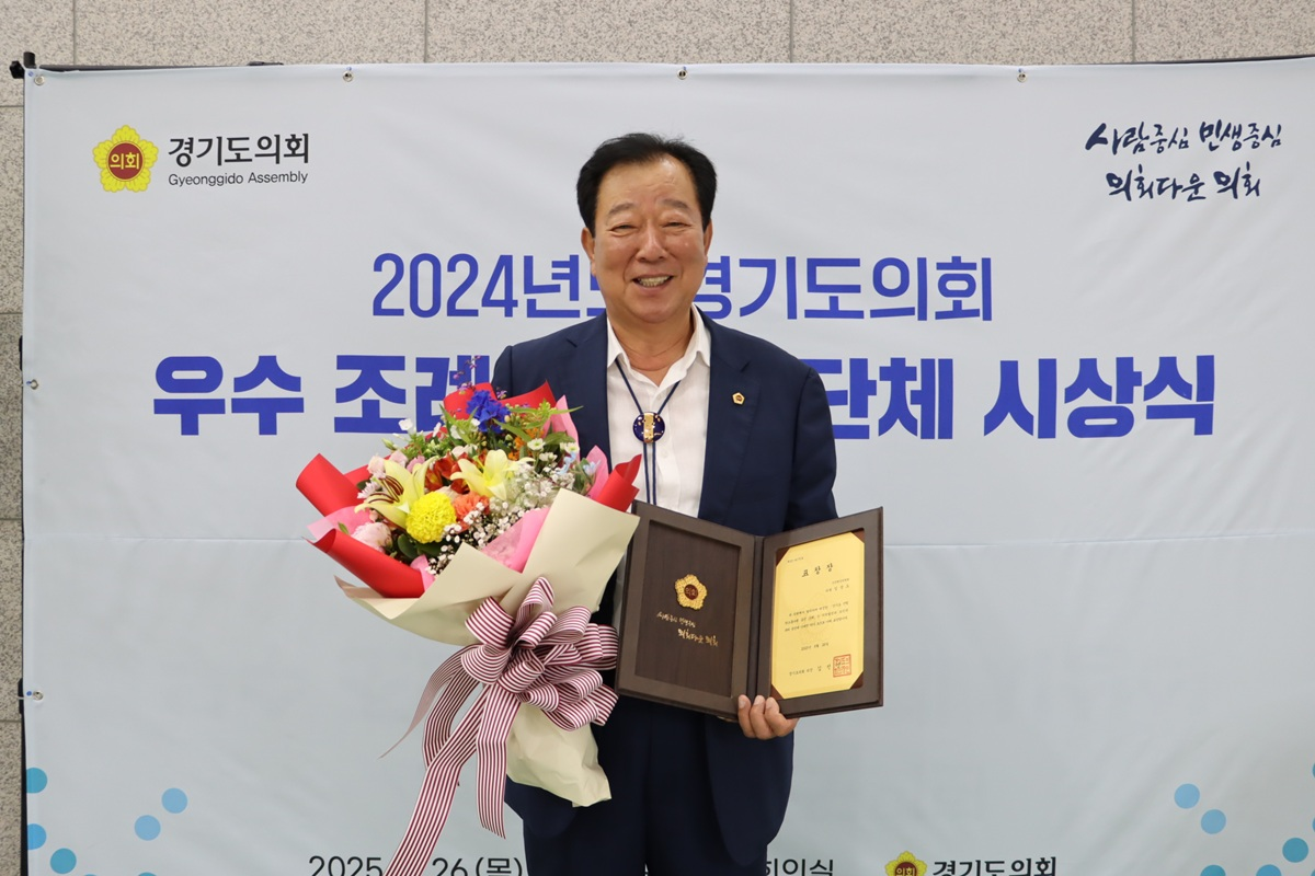 경기도의회 안전행정위원회 임상오 위원장(국민의힘, 동두천2)은 지난 6월 26일 경기도의회 대회의실에서 열린 ‘2024년도 경기도의회 우수조례 및 연구단체 시상식’에서 「경기도 산림탄소흡수원 증진 조례」 제정의 공로로 우수조례 수상자로 선정됐다.
