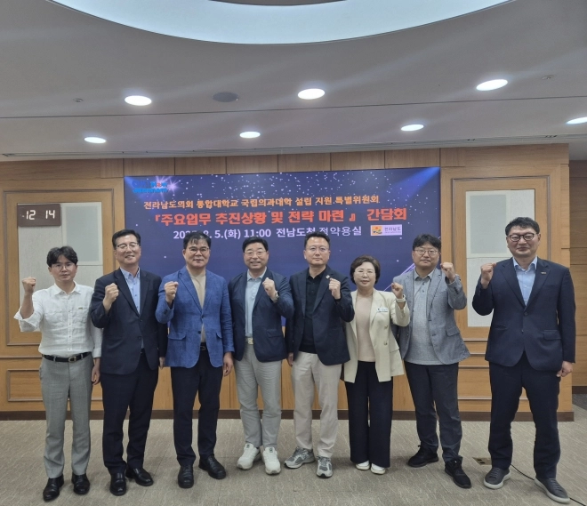 전라남도는 5일 도청 정약용실에서 전남도의회 ‘전라남도 통합대학교 국립의과대학 설립 지원 특별위원회’, 목포대학교, 순천대학교와 함께 간담회를 갖고 국립의대 설립 전략과 협력 방안을 모색했다.
