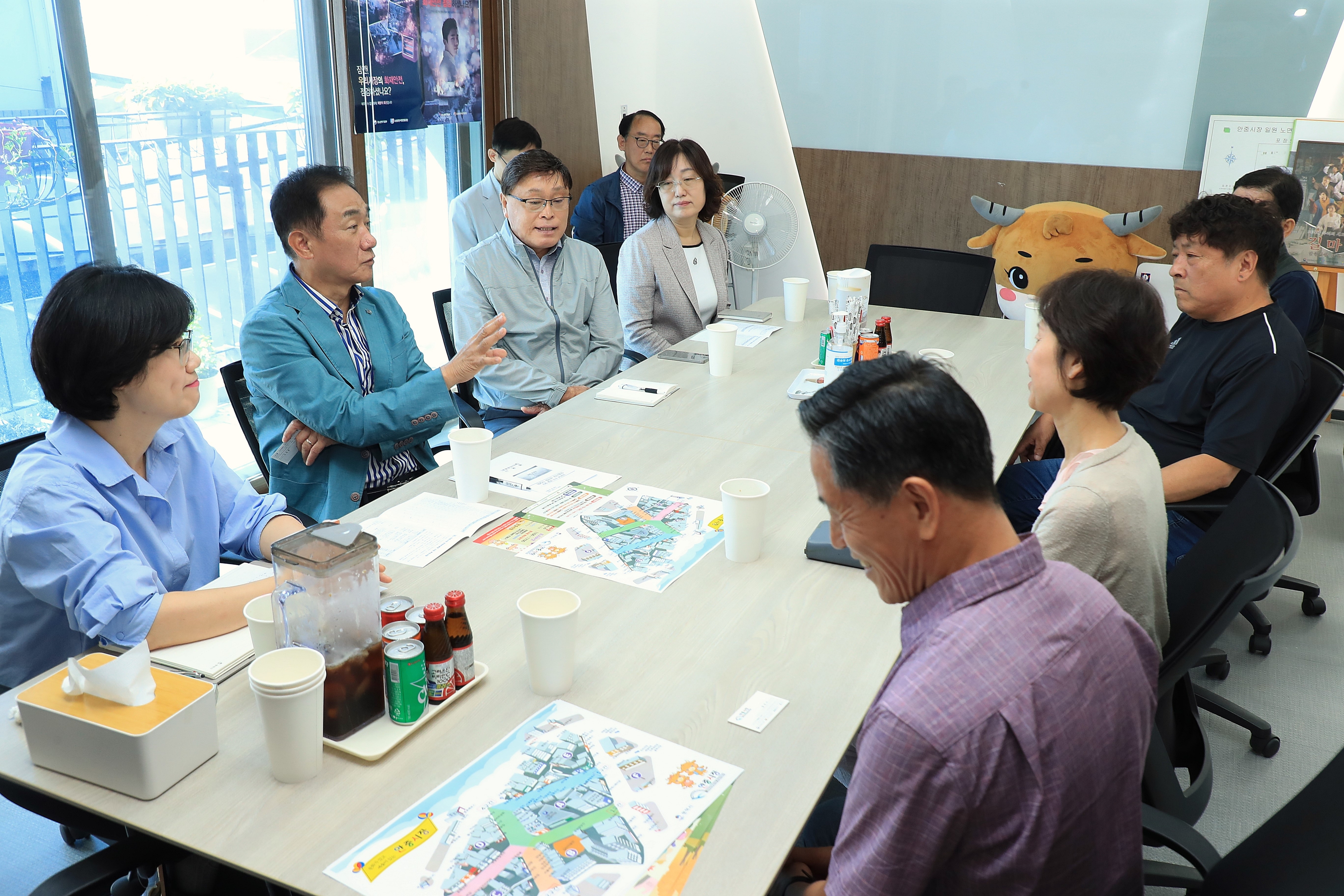 정장선 평택시장이 추석 명절을 앞두고 전통시장을 찾아 전통시장 활성화를 위한 현안 사항을 점검하고 소통하는 시간을 갖고 있다.