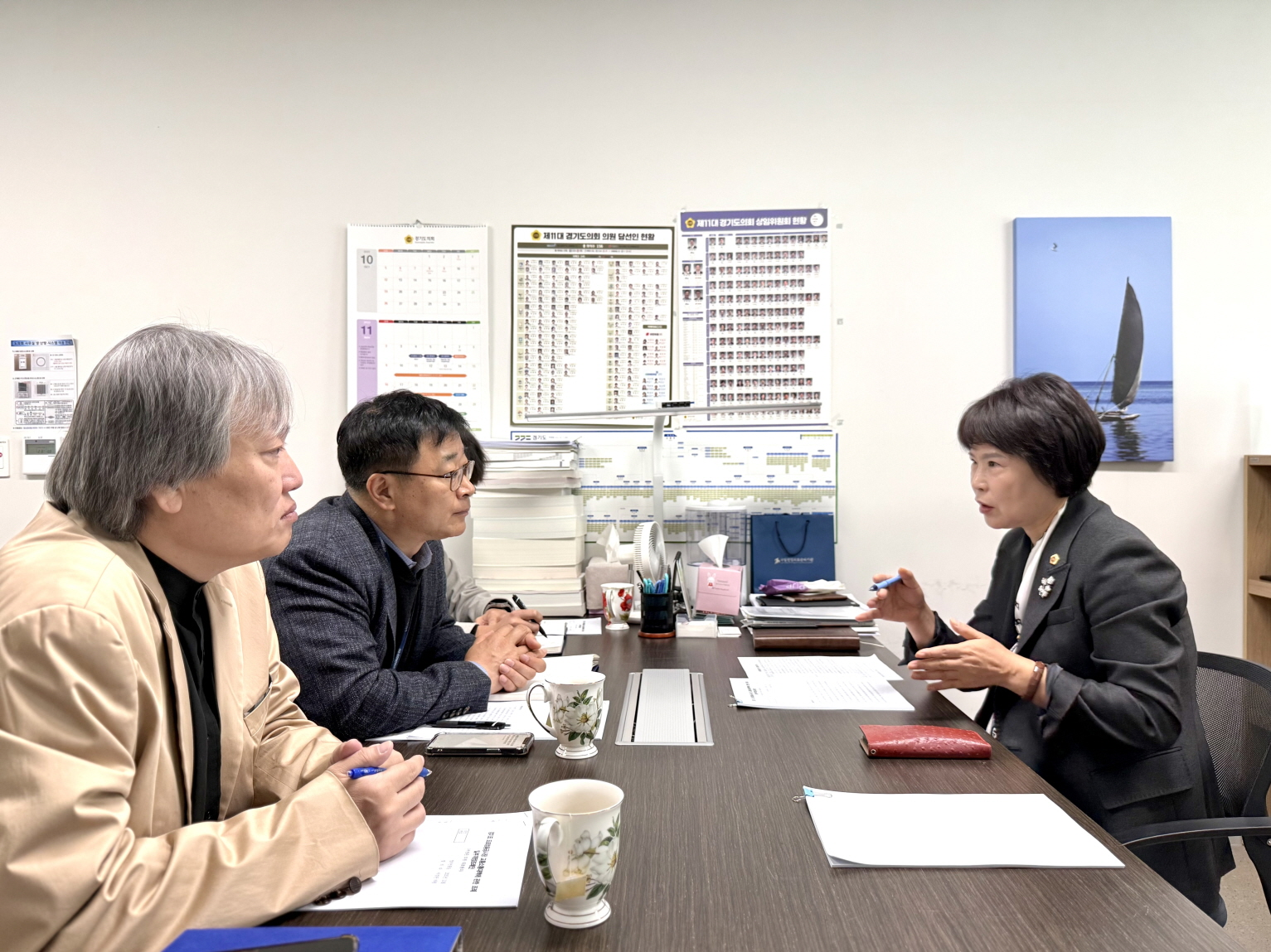 경기도의회 건설교통위원회 서성란 의원(국민의힘·의왕2)은 11일 경기도의회 의원실에서 도로안전과 관계자들과 함께 「경기도 도로점용공사장 교통소통대책에 관한 조례 일부개정조례안」과 관련해 논의하는 자리를 가졌다.