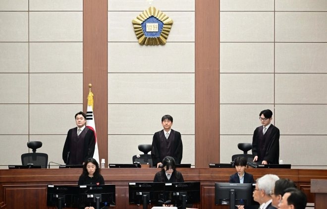 | 윤석열 전 대통령 2차 공판 대법원이 국가적 중요 사건 전담재판부 설치를 위한 예규 제정 방침을 발표했지만, 더불어민주당은 내란전담재판부 설치 특별법 처리를 강행하기로 했다. 오는 23일 본회의에 붙이고 이미 예고된 국민의힘의 필리버스터를 종결시킨 뒤 24일 처리할 방침이다. 사진은 현재 1심 진행 중인 윤석열 전 대통령의 내란사건 재판을 심리하는 지귀연(가운데) 부장판사가 지난 4월 열린 2차 공판에 입정하는 모습. 서울신문DB |