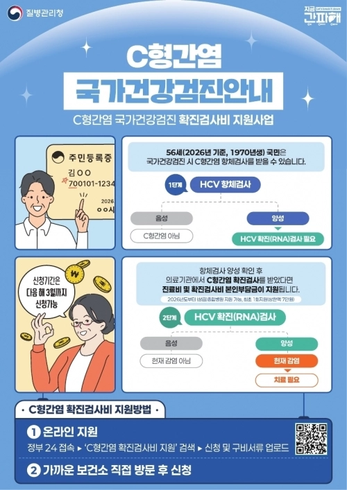 서울 구로구가 56세 구민을 대상으로 실시하는 ‘C형간염 확진 검사비 지원사업’의 범위를 올해부터 종합병원을 포함한 전국 모든 의료기관으로 확대한다.13일 구에 따르면, 국가건강검진(1차 검사)에서 C형간염 양성 반응이 나올 경우, 실제로 바이러스가 있는지 확인하기 위해 확진 검사(RNA 검사)를 반드시 받아야 한다. 기존에는 동네 의원급에서 검사한 경우만 비용이 지원됐으나, 올해부터는 대학병원이나 종합병원 등 대형 의료기관을 이용해도 지원금을 받을 수 있게 됐다.