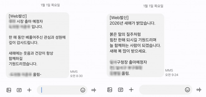 경기 지역 한 기초단체장 명의 새해 메시지를 받은 서울 관악구 주민 박모(34)씨도 “얼굴도 모르는 사람에게 문자를 받으니 ‘내 번호는 어떻게 알았나’ 싶다”며 “개인정보 유출이 일상화됐다지만 정치인들까지 무분별하게 메시지를 보내니 불쾌하다”고 말했다.
