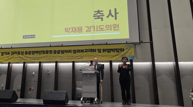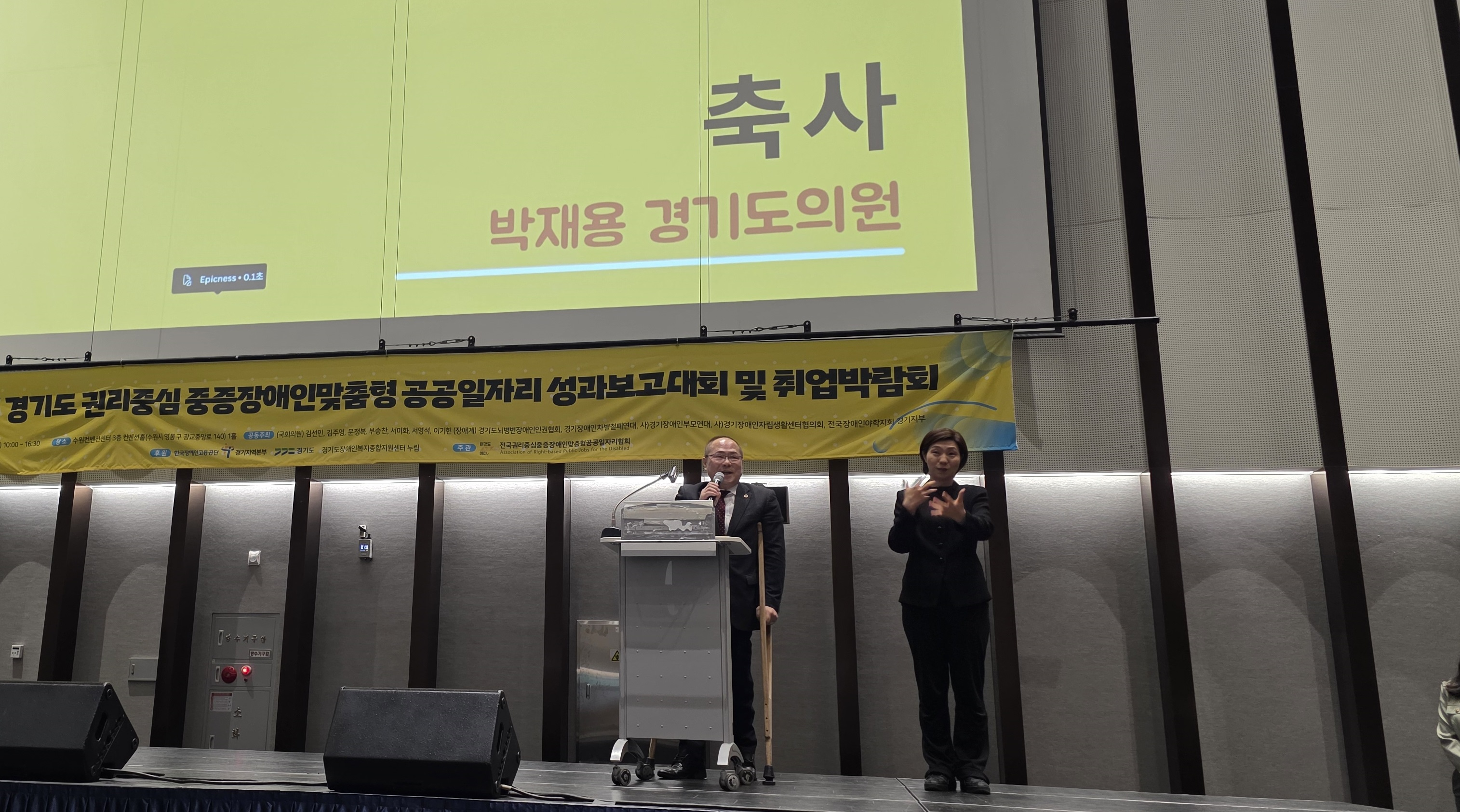 경기도의회 보건복지위원회 박재용 의원(더불어민주당, 비례)은 16일, 수원컨벤션센터에서 열린 ‘2025년 경기도 권리중심 중증장애인맞춤형 공공일자리 성과보고대회 및 취업박람회’에 참석해 축사를 전하고, 중증장애인의 노동권 보장과 권리중심 공공일자리 정책의 지속적인 발전 필요성을 강조했다.