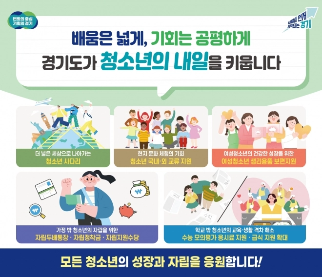 경기도가 올해 청소년의 건강한 성장과 배움 기회, 생활 안정을 위해 급식, 학습·진로·자립 지원을 아우르는 다양한 정책을 추진한다.