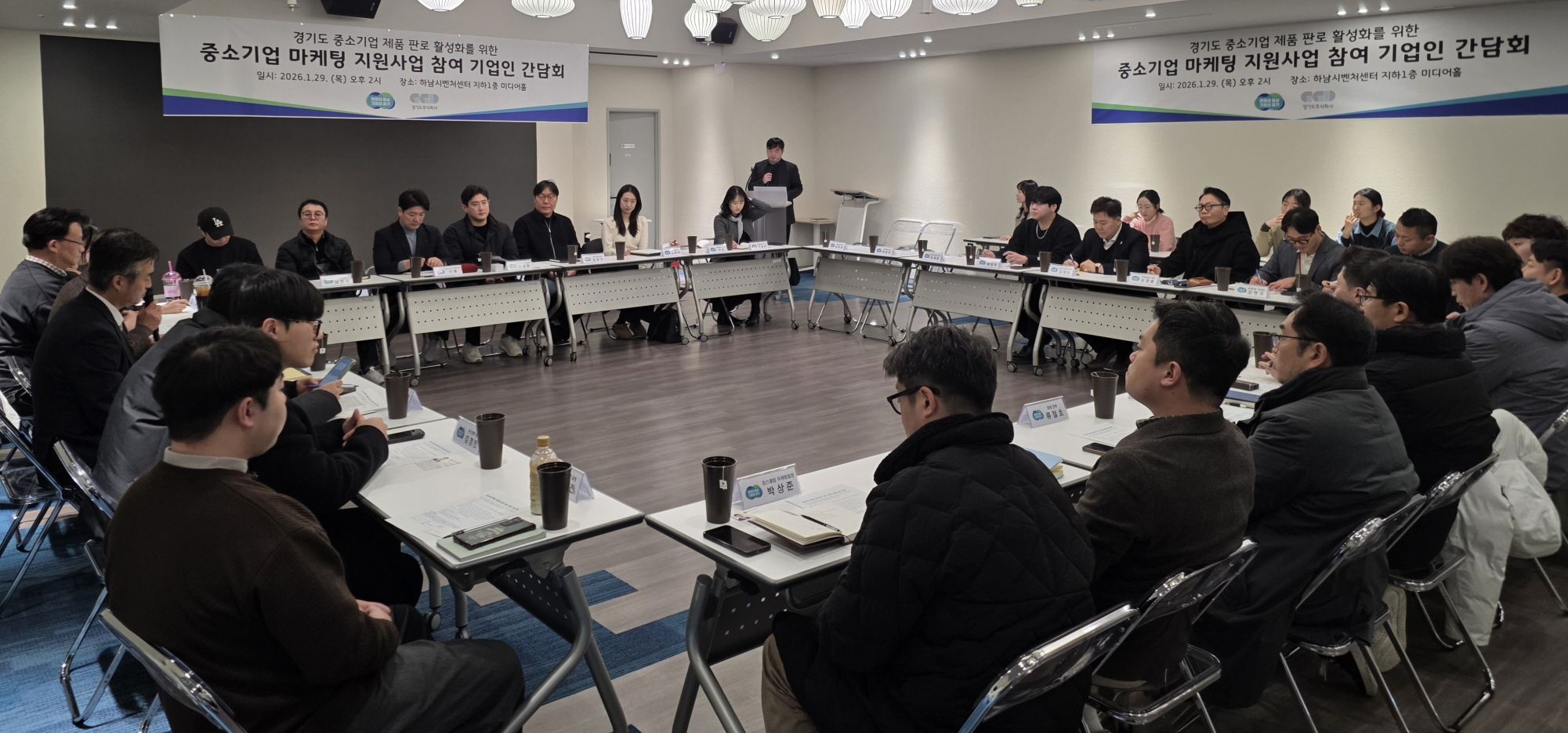 경기도의회 경제노동위원회 소속 이상원 의원(국민의힘)은 1월 29일 하남시벤처센터에서 열린 「중소기업 마케팅 지원사업 참여 기업인 간담회」에 참석해, 도내 중소기업들이 현장에서 겪고 있는 마케팅·판로 관련 애로사항을 청취하고 제도 개선 방향을 논의했다.