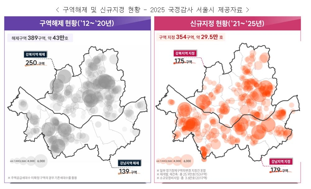 또 김 위원장은 “오 시장은 21년 취임 후 해제됐던 정비구역 일대의 낙후된 주거환경을 개선하고 주택공급을 촉진하기 위해 신통기획, 사업성보정계수 등을 도입해 다시금 중장기 주택공급기반을 마련하기 위해 절실히 노력했으며, 사업소요기간 단축을 위해 인허가 규제도 대폭 혁신해왔다”라며 “그 결실로 2021부터 2025년까지 354구역을 지정, 약 29.5만호의 공급기반을 달성했다”고 설명했다.