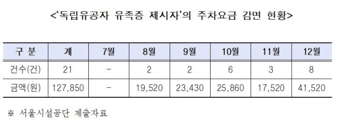 또한 독립유공자 선순위 유족은 고령자 비중이 높아 경제활동 참여가 어렵기 때문에, 주차요금 감면과 같이 일상에서 체감할 수 있는 실질적 지원을 강화해야 한다는 사회적 요구도 큰 상황이다.