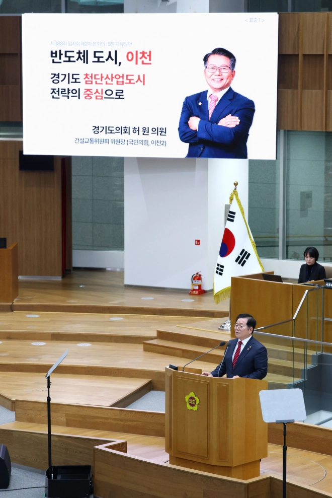 경기도의회 건설교통위원회 허원 위원장(국민의힘·이천2)은 4일 경기도의회 제388회 임시회 제2차 본회의 5분 자유발언을 통해, 이천을 중심으로 한 경기도 첨단산업 정책의 방향성을 제시했다.