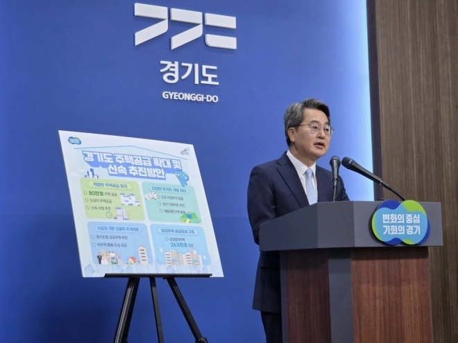 | 김동연 경기지사가 지난달 30일 도청 브리핑 룸에서 기자회견을 열고 경기도 주택ㄷ공급 확대 및 신속 추진방안을 설명하고 있다. (경기도 제공) |