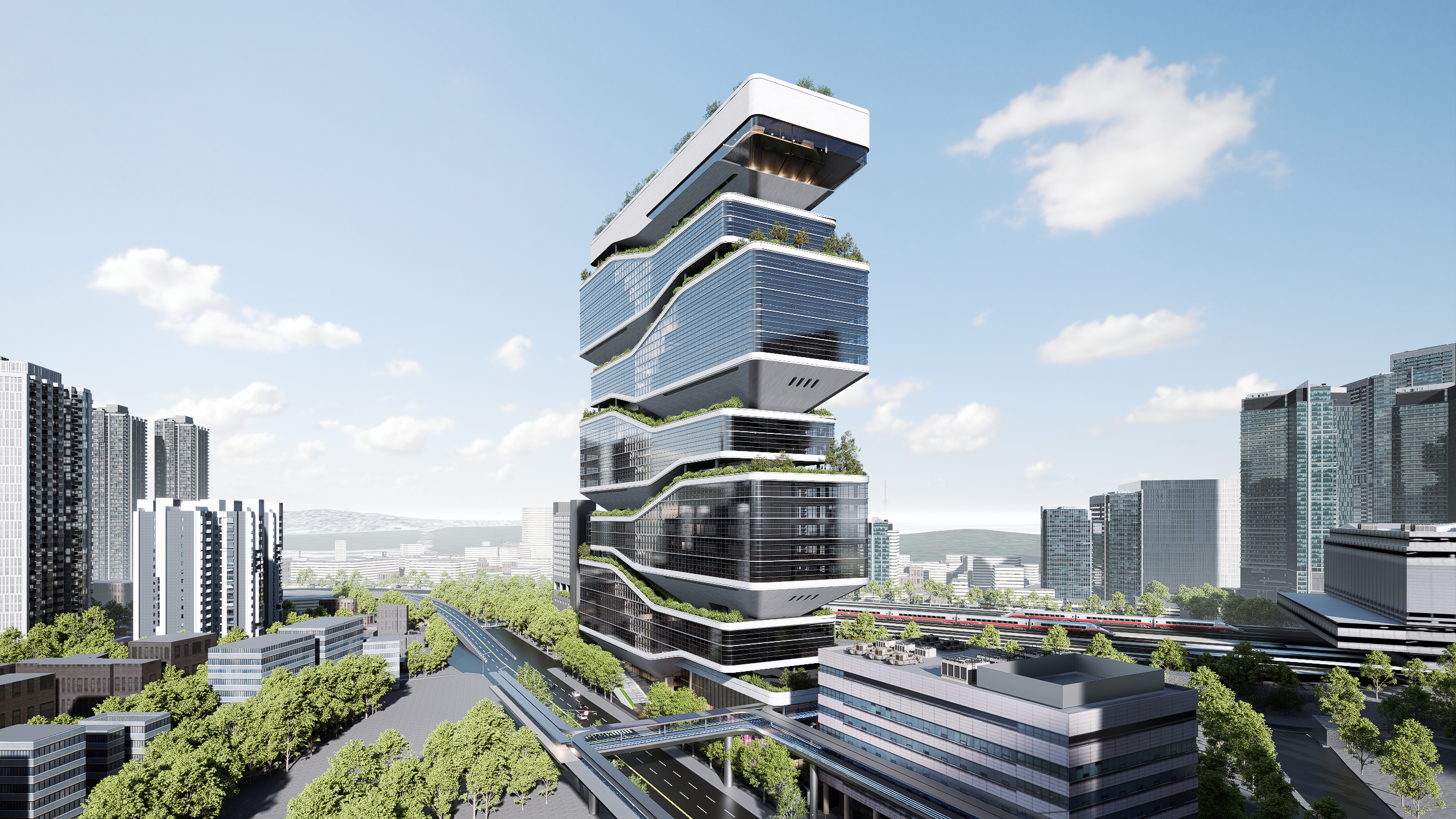 건축물의 지상 1층부터 최상층 옥상까지 수직으로 동선이 이어지는 ‘공중 정원’이 입체적으로 조성된다. 저층부에는 보행 공간과 사계절 내내 활용 가능한 도심 속 녹지 쉼터가 확충된다.