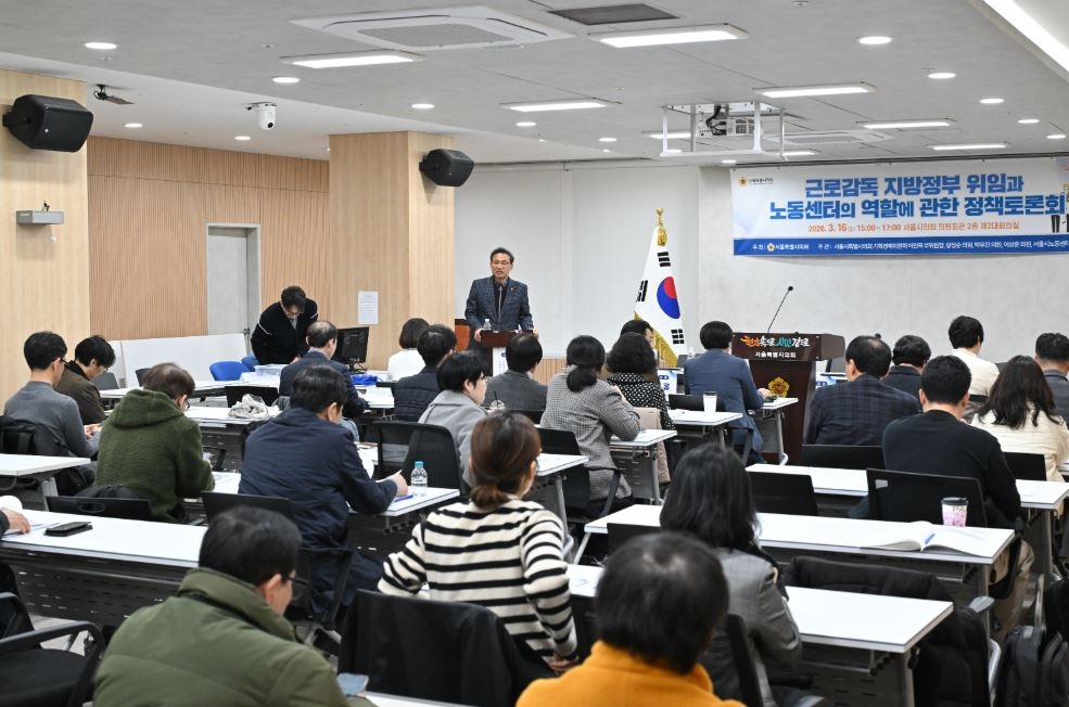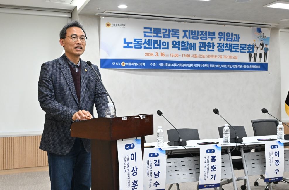 서울시의회 기획경제위원회 이상훈 의원(더불어민주당, 강북2)은 지난 16일 서울시의회 의원회관 제2대회의실에서 ‘노동감독 지방정부 위임과 노동센터의 역할에 관한 정책토론회’를 개최해 최근 노동감독관 직무집행법 국회 의결에 따른 서울시의 권한 이양 준비와 자치구 노동센터와의 협력체계 구축 방안 등을 논의했다.