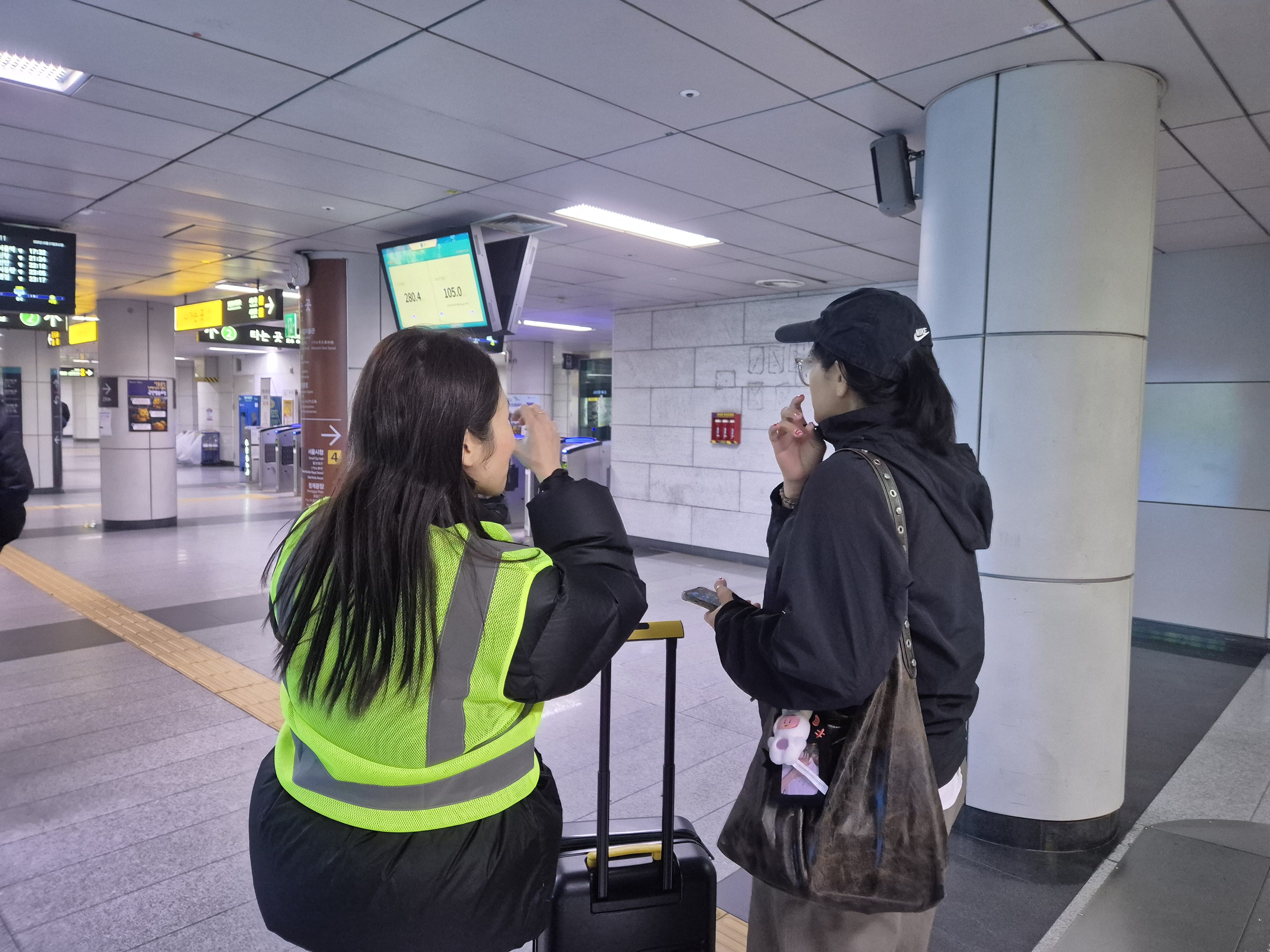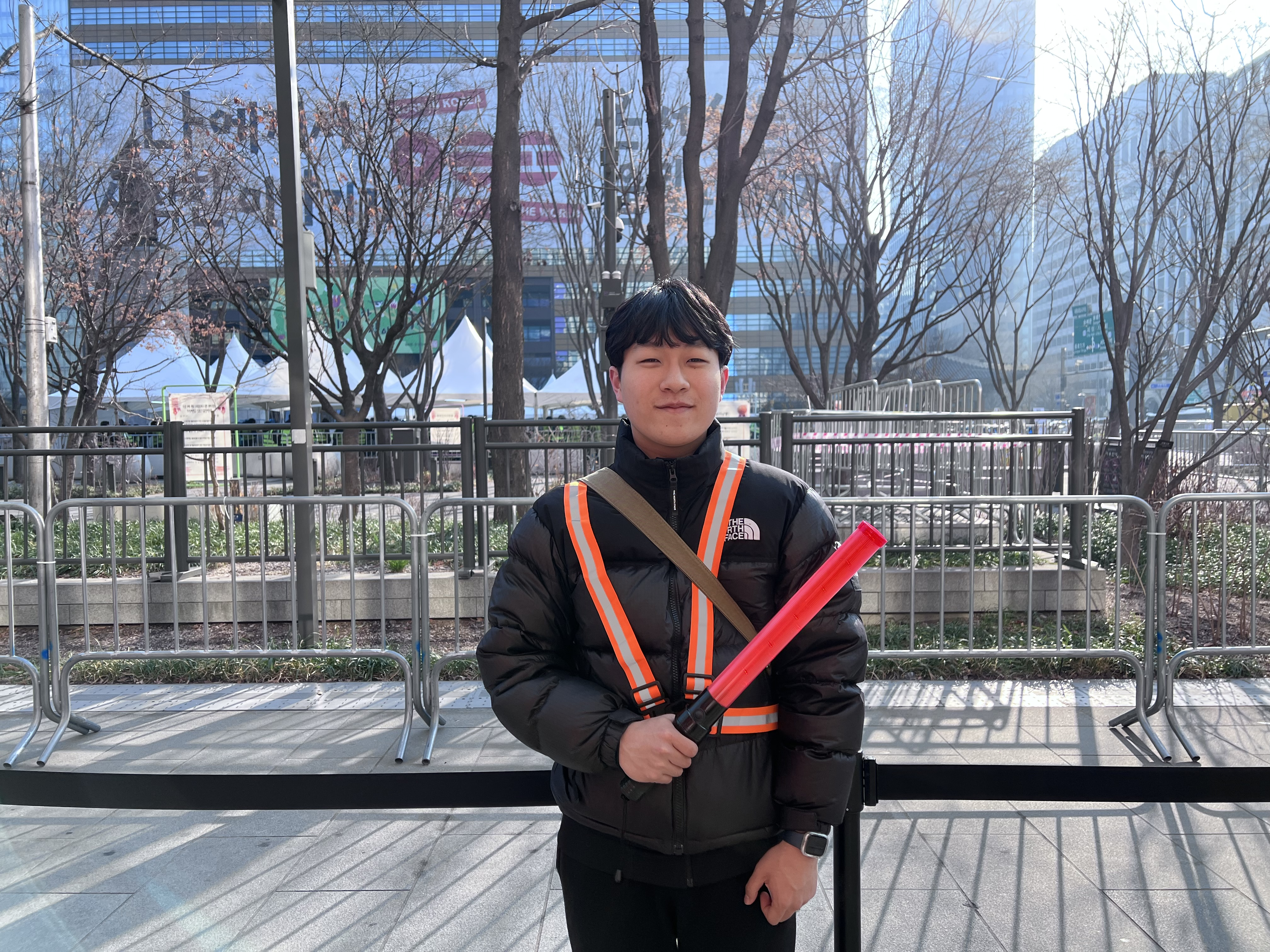 지상에서도 세계 각지에서 온 아미들을 안내하는 인력들이 눈에 띄었다. 광장에서 길 안내를 맡은 대학생 김하진(21)씨는 “지나다니는 분들이 길을 물으면 영어로 안내하고 있다”며 “맡은 구역의 질서를 책임진다는 마음으로 일하고 있다”고 전했다. 주황 조끼를 입은 김씨는 점멸하는 안전봉을 들고 인파를 유도했다.