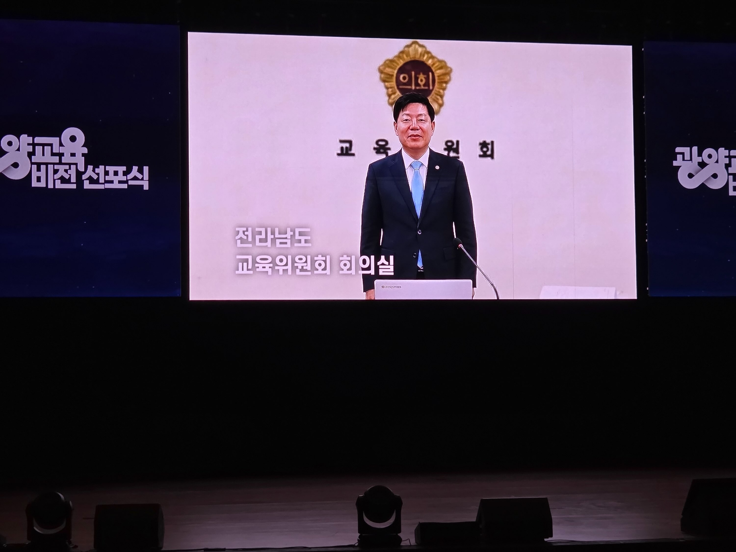 김정희 전남도의회 교육위원장이 지난 20일 광양 백운아트홀에서 열린 ‘HIGH 광양교육, 트렌드 2030 비전선포식’에 참석해 광양교육의 미래 방향을 공유하고 전남도의회의 지속적인 지원 의지를 밝혔다.