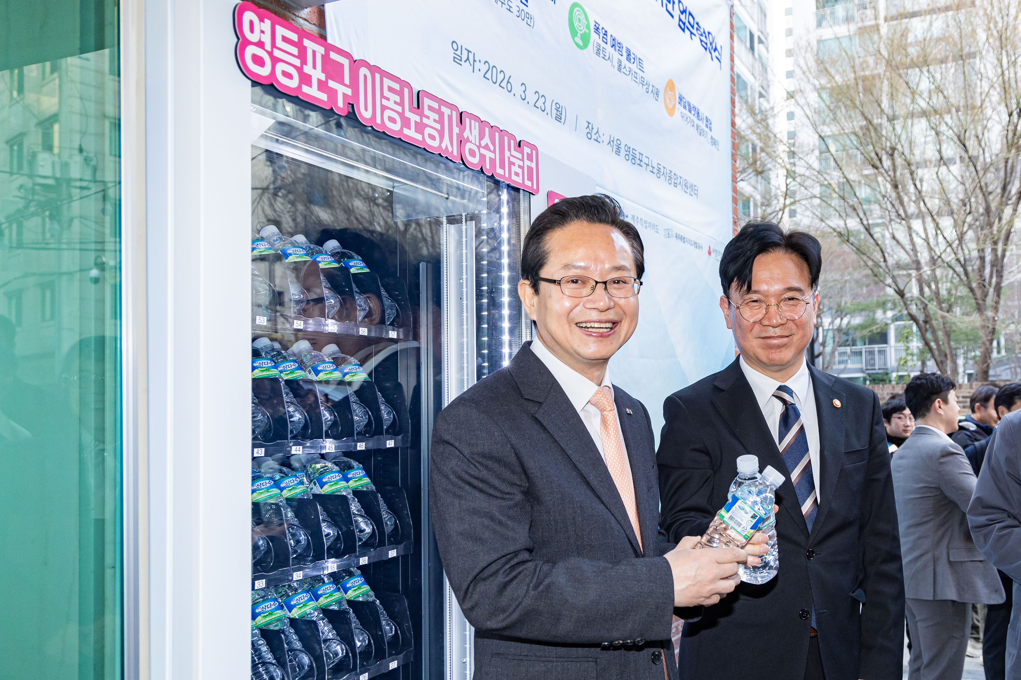 서울 영등포구는 지난 23일 김영훈 고용노동부 장관이 당산동에 있는 ‘이동노동자 쉼터 1호점’을 방문해 현장을 살피고 이동노동자 온열질환 예방을 위한 생수 나눔 업무협약을 체결했다고 24일 밝혔다.