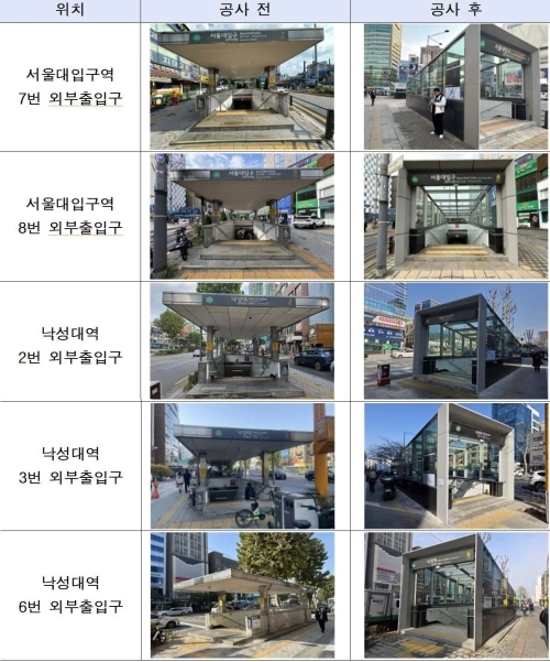 서울대입구·낙성대·사당역 7개소 외부출입구 캐노피 설치 완료(2025.11.~2026.3.)