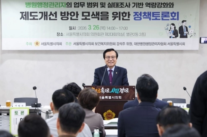 서울시의회 보건복지위원회 강석주 의원(국민의힘·강서2)은 지난 26일 서울시의회 제2대회의실에서 ‘병원행정관리자의 업무 범위 및 실태조사 기반 역량 강화와 제도 개선 방안 모색을 위한 정책토론회’를 개최하고, 병원행정관리자의 역할 재정립과 제도 개선을 위한 정책 논의를 본격화했다.