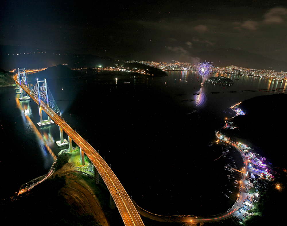 연두, 파랑, 노랑 등 시시각각 색을 바꾸는 LED 조명이 바다와 하늘을 배경으로 빛의 파노라마를 펼친다. 노을이 지는 황금 시간대(매직 아워)에는 붉게 물든 바다와 형형색색의 교량이 어우러져 가장 인상적인 장면을 연출한다.