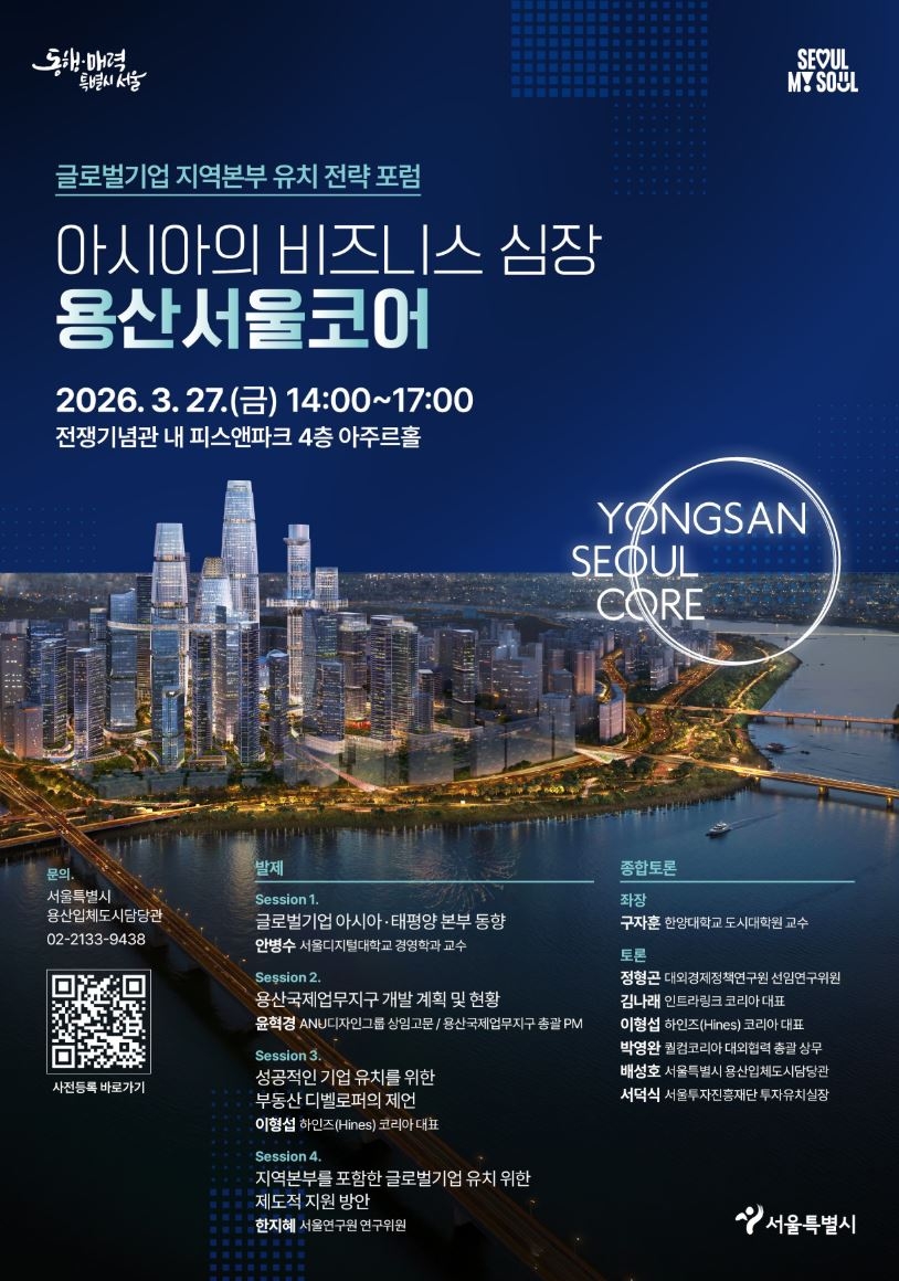 그러면서 “이번 포럼을 통해 용산국제업무지구가 단순한 베드타운이 아닌, 서울을 넘어 대한민국을 대표하는 글로벌 비즈니스 중심지로 도약하는 중요한 전환점이 되기를 기대한다”고 강조했다.