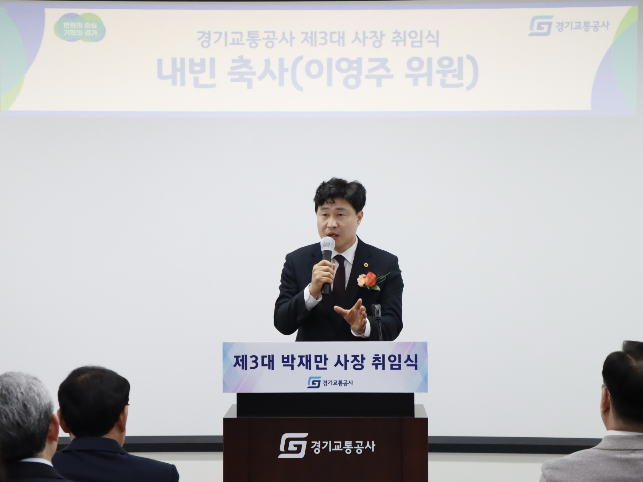 이어 조직 운영의 기반과 관련한 현실적인 과제도 언급했다. 그는 “경기교통공사의 사옥 건립이 추진되다가 예산 부족으로 좌초된 상황은 매우 아쉬운 부분”이라며 “조직의 안정성과 연속성, 직원 복리 차원에서도 반드시 해결되어야 할 과제인 만큼, 박 사장께서 이 문제를 풀어주시길 기대한다”고 당부했다.