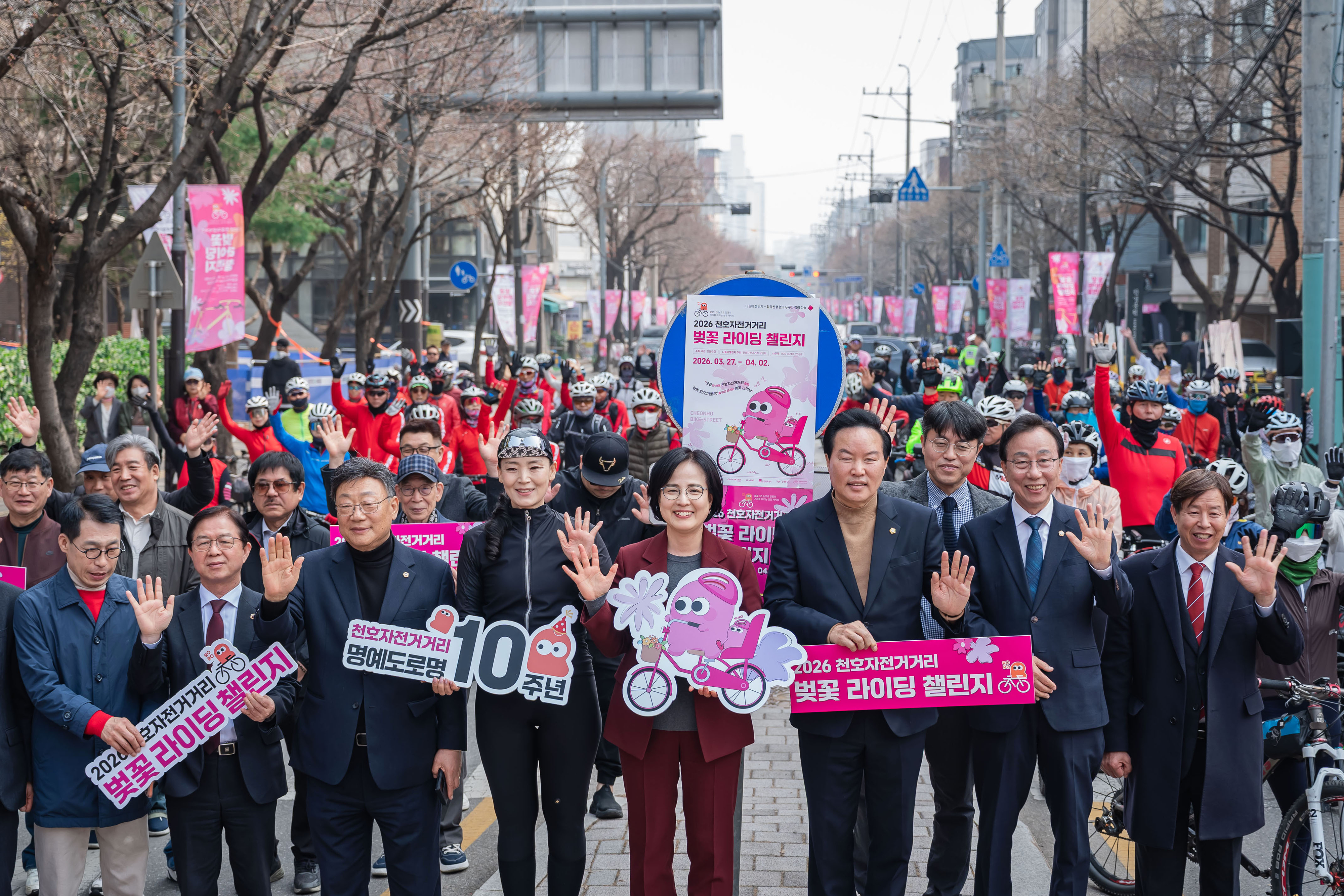 올해 서울의 첫 벚꽃이 얼굴을 내밀기 시작한 지난 27일, 천호동에 사는 박상돈(65)씨는 안장 위에 앉아 밝게 웃으며 이같이 말했다. 이날 천호자전거거리에는 헬멧부터 고글, 라이딩 전용 신발 등을 갖춘 라이더 100여명이 한자리에 모였다. 강동구에서 개최한 ‘2026 천호자전거거리 벚꽃 라이딩 챌린지’에 참가하기 위해서다. 강동구민 외에도 서울 전역의 자전거 동호인과 개인 라이더 등이 사전 신청을 하고 참여했다. 지난 2월 19일 사전 접수 6시간 만에 2500명이 모두 마감될 만큼 높은 관심을 끌었다.